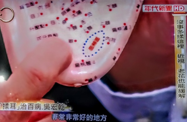 四、低血壓溝:從屏間切跡下至耳垂7區,大致與耳前溝相平行,多提示低血壓。