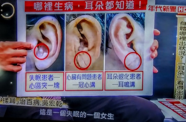 男性如有45度的耳折痕橫跨耳郭,則死於心臟病的概率為55%,而有其他角度的耳折痕的心臟病患者