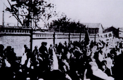 五四運動的過程在1919年5月4日,北京學生二十多人在天安門前集會,舉行示威遊行。