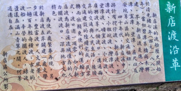 曾幾何時,日換星移,北部著名的水利工程 瑠公圳,只剩下大坪林捷運站後方的一小段排水溝(據說即將加蓋封閉),而位於開天宮下方,塯公圳入水的石腔,也由廟方以安全的理由關閉,好像只有由市政府申請的參觀團體才有機會看到.亮麗現代的碧潭風景區 ,從外表上己很難感受先民開拓土地的辛酸,只剩下開天宮一旁的 新店渡渡口,供碧潭來往的遊客憑弔.開天宮地址在:新北市新店區新店路65號.http://classic-blog.udn.com/alpineatks/126407049 參考資料:廟內沿革.