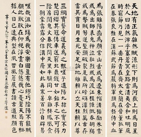 天地有正氣,雜然賦流形。下則爲河嶽,上則爲日星。於人曰浩然,沛乎塞蒼冥。