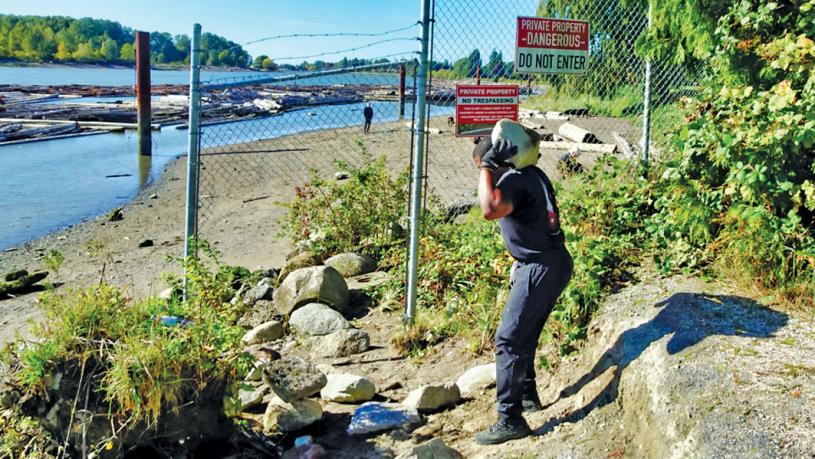 肩頭扛大石,挺身復屈膝。鍛練菲河邊,不去健身室 。星島記者攝