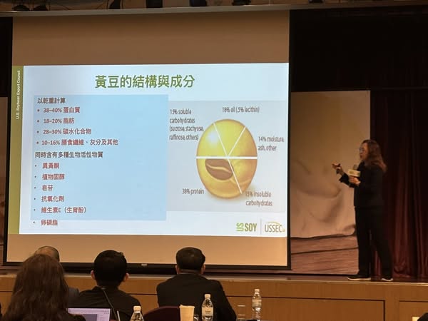 楊斯涵指出,在東南亞地區,印尼是美國黃豆出口的首要進口國,而以黃豆發酵製成的「天貝(Tempeh)」更是印尼家庭飲食中不可或缺的功能性食品,曾被聯合國列為非物質文化遺產,象徵文化傳承的代表。她進一步說明,根據科學研究,經常攝取黃豆製品對健康有多重益處,包括: