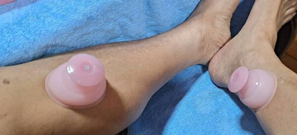 阿是穴(疼痛點)、足三里、膝眼。局部關節拔罐與走罐,促進血液循環。