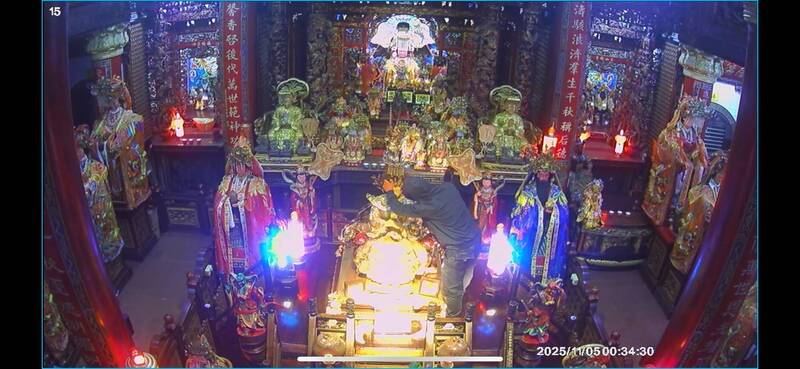 黑衣男入侵廟內被監視器拍下。(圖由讀者提供)