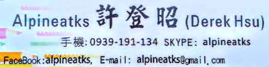 alpineatks 主內許登昭(Teng-Chao Hsu a.k.a.Derek Hsu) ;SKYPE: alpineatks ; LINE ID :0908006079 ;Cell#:0886939191134:E-mail:alpineatks@gmail.com;