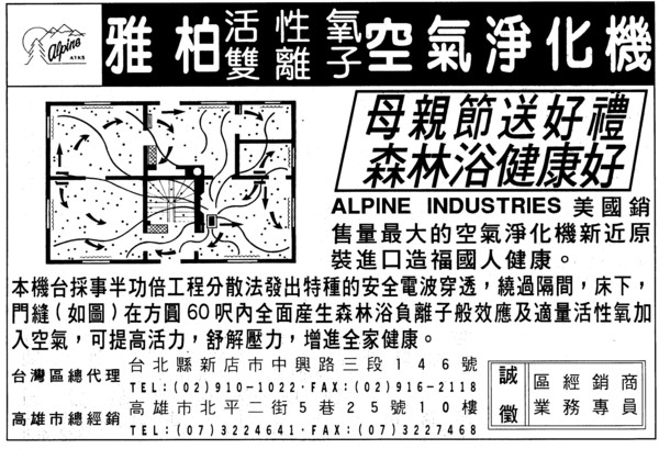 "空氣淨化機業的導遊" http://classic-blog.udn.com/alpineatks/24862998 因曾有當時台灣認為很貴的美國空氣凈化機代理權而親自逐步解決銷售困難經驗徵求接棒者 http://classic-blog.udn.com/alpineatks/130937979