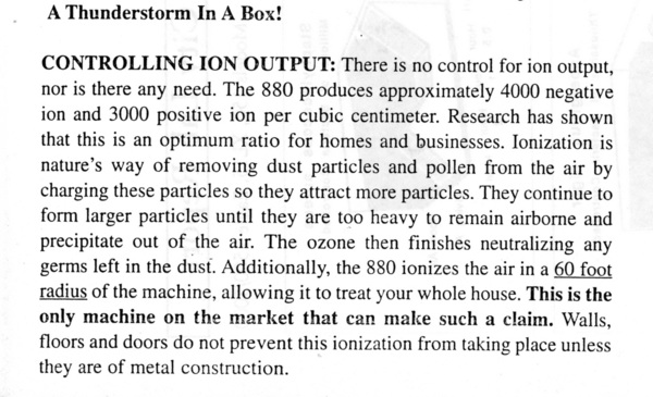 目前環顧市場仍是只有我獨創論述最完整,又已有行銷實例的唯一廠家,若是有預算,和人手,可成立專責發展單位的合宜廠家合作,期生產使室內大面積具類大自然森林浴效果的六十英呎半徑球狀範圍雙離子產生器: