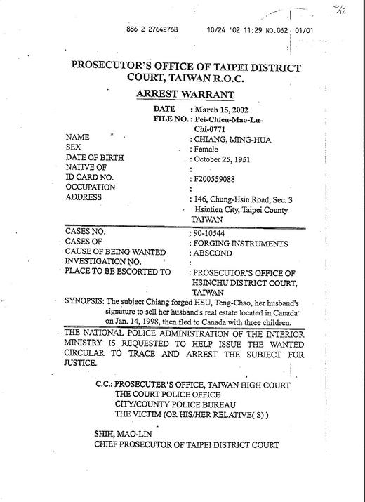 敬請大力幫忙幫alpineatks想想法子-傳遞加拿大友人或相關單位--他原就是台灣通緝犯張書銘(Paul Chang)與他母親[余妻江明樺(Angel
