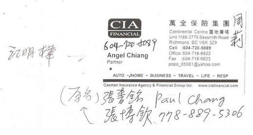 事事如意生活網站張博欽 還在烈治文置地廣場開了保險公司,幫客戶做房屋和汽車保險。http://tw.blog.yahoo.com/post/post_html.php?mid=588
