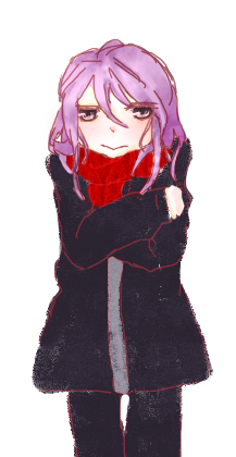 冷天雙手環抱胸口很舒服,再把頭縮到圍巾裡。