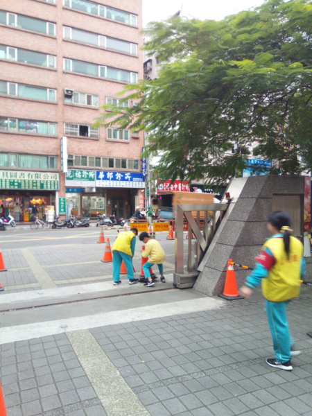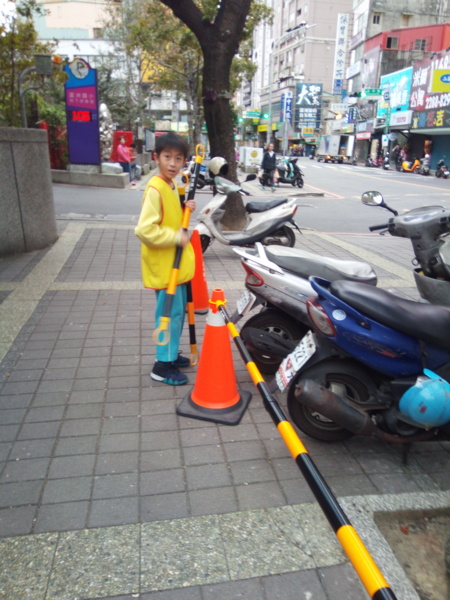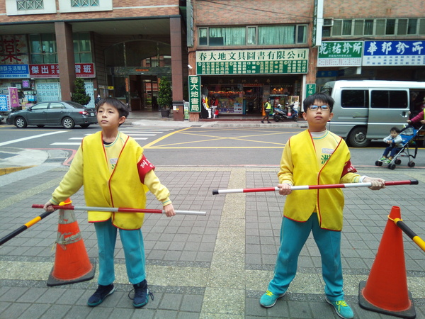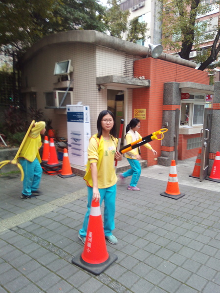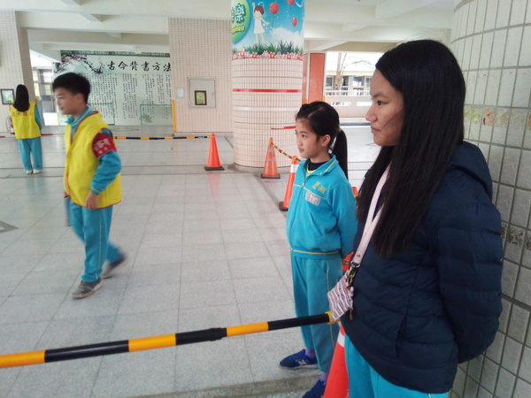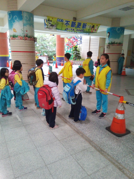 昨天我們和八班交接。到下禮拜四為止,我們要當糾察隊啦!這次的桿子什麼的都放回儲藏室,只有大隊長有鑰匙。經過一陣搬運工程,終於擺好了,大家站好等待放學。噹噹噹!鐘聲響起,同學們準備回家,在他們放學的時候,真的是各種人都有!像是張泓凱在我擋住學生時,對小學弟說要戴上名牌,學弟剛拿出來戴上時,我說:「但是你可以走了。」學弟走出校門還講了一句:「哈哈,冷笑話、幽默!」我們一整個笑翻!但有時候也會遇到沒有禮貌的人,真的讓人感到難過。當糾察隊有好也有壞。------筱玄