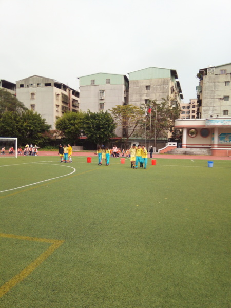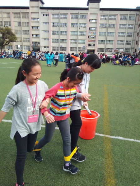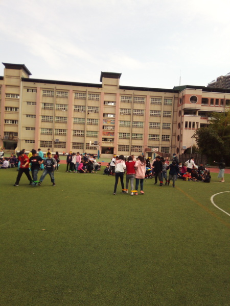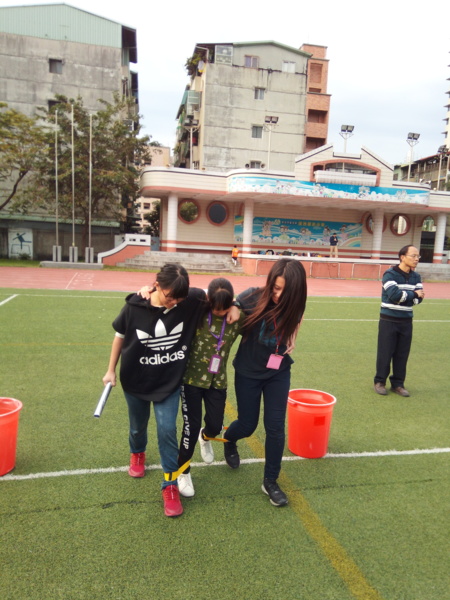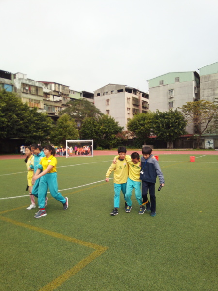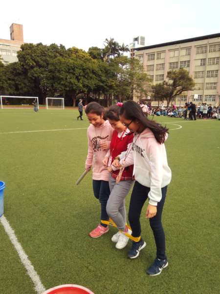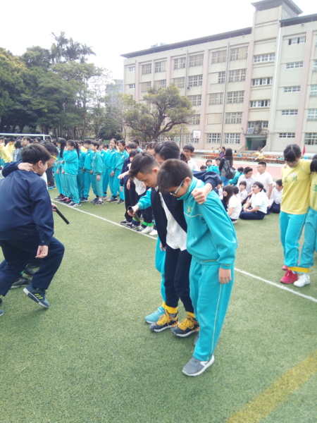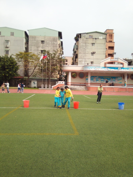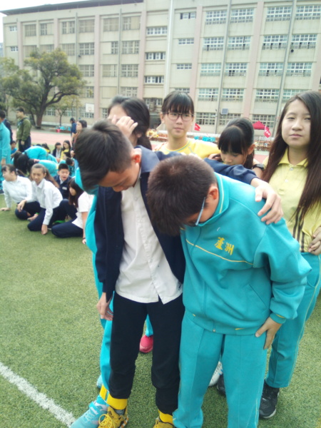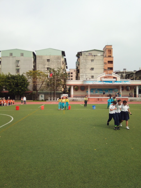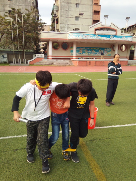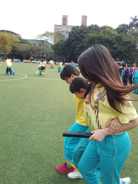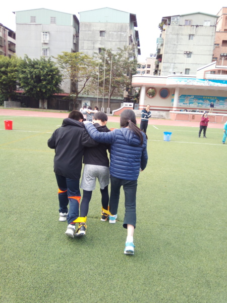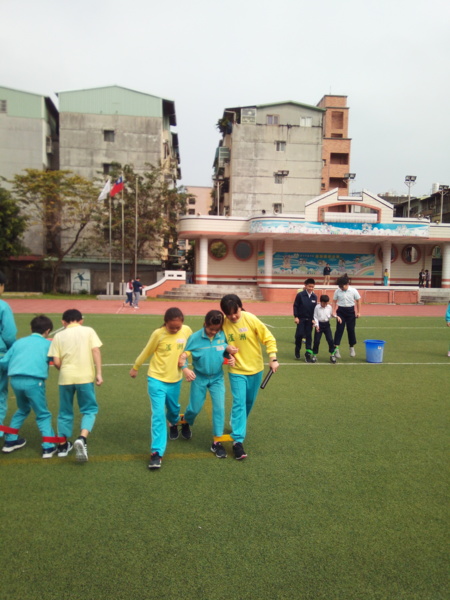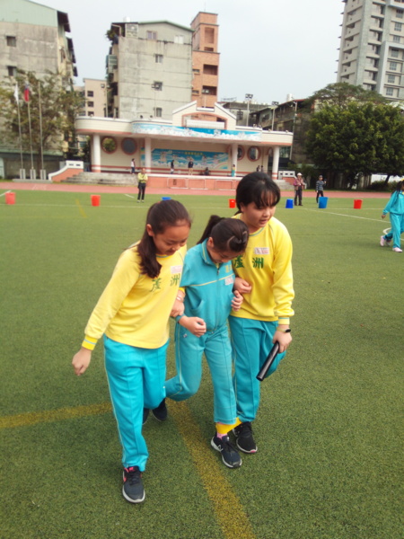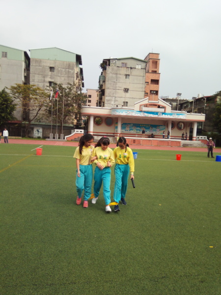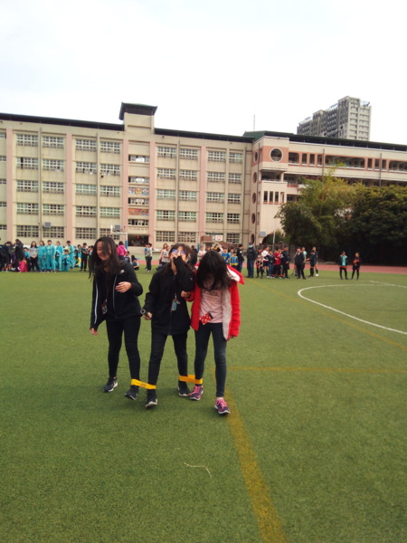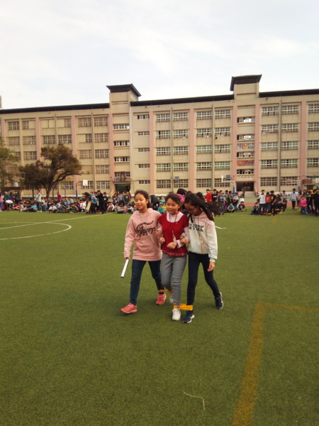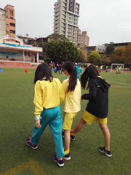 今天下午的最後一節,全六年級都一起下去操場練習進退場、和三人四腳。在走三人四腳時本來還順順的,結果往回走時就開始有點不順,之後的下課要好好練習才可以,走完三人四腳之後的感覺只有「好累」。-----芷昕