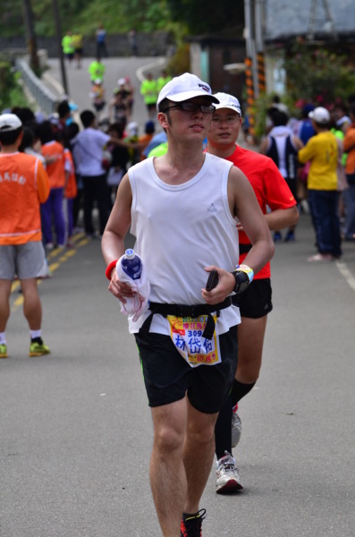 前面18K就配合兔子的速度,過了最高點後兔子就跑走了,離我越來越遠,只剩下我一個人慢慢推到了33K準備長下坡時,我改用跑走法,跑