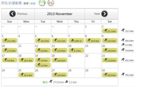 2013十一月運動日誌