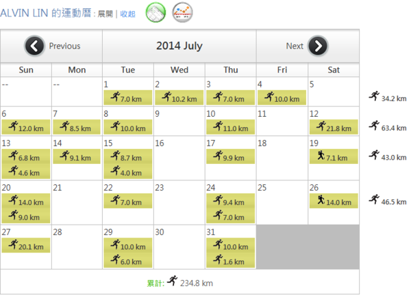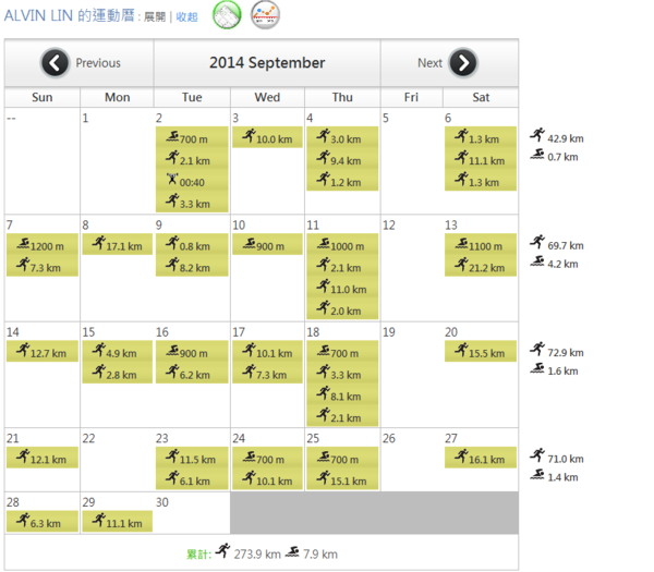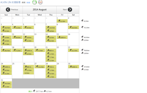 八月份還是很熱,但終於有進步一點,跑量較上個月增加約14%,慢慢穩定增加就好,一下子拉太多我的阿蓋會受不了,同時這個月只報了一場路跑活動,距離也只有10K而已,因怕太陽太毒,只好來場速度練習一...