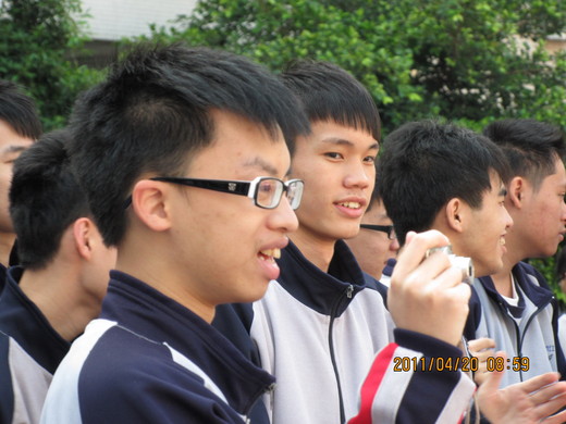 大會從8:00開始,來賓、老師把司令台坐滿了
