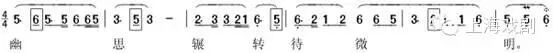 例二中“推”字为阴平声,不宜跟《秋江》【小桃红】同字位的阴去声“怕”字做相同的腔,宜改“i-”,若不然“推”字唱作“退”字音。而本句增字“色”只得放在赠板位置是妥当的。他如【水仙子】乐句音区高低交错的用法也是特色腔法,【园林好】曲(例六)因取北套法而没有使用特色腔格。