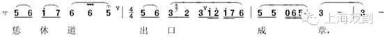 【好姐姐】一曲首句应是独立二字句,叶平声韵,乐句与之相符(例五),如《牡丹亭·游园》“遍青山”、《占花魁·受吐》“慢说”、《烂柯山·泼水》“怎知”等等。句段遵守难度不大,剧中【醉花阴】【好姐姐】【鸳鸯煞】【滚绣球】【小桃红】的刻意删句应慎处之。衬字需在行腔富余的地方,衬位不当或字数过多容易形成被迫加板,