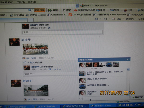 ( ↑ 樂隊OB許治平、儀隊吳建雄、余衍等用心經營「臉書」,只為傳承樂儀隊的忠勤精神)