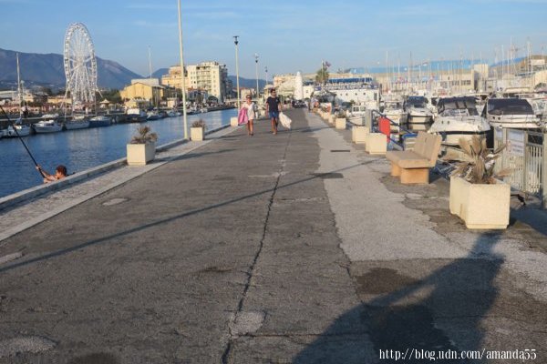 結束沙灘漫步後,回程我改走與沙灘並行的濱海步道,這條步道比一般的道路還寬,並設有腳踏車專用道路,車子使用的道路縮小成單行道,這樣的設計實在有趣,令我覺得住在這裡的居民真是幸福,湊巧我選擇走步道回來,才能大開眼界後深入暸解這座城市。傍晚走向防波堤,在燈塔附近等待觀賞夕陽與夜景,再逛到市中心拍攝夜景並感受熱鬧的氣氛,才結束今日的維亞雷焦之旅。