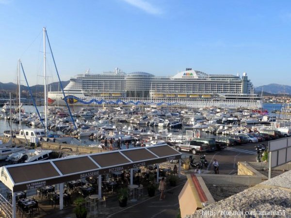 傍晚6點Moby渡輪逐漸接近科西嘉島(Corsica)東北部的港口巴斯蒂亞(Bastia), 第8層甲板船的右側形成一道人牆,登岸後有接駁車免費載客到碼頭出口,看著地圖我往hotel Posta Vecchia走,邊走邊拍照半個鐘頭後抵達旅館,這是景觀最美的一晚住宿,就在港口水道的對面巷口,我住在二樓有窗戶的雙人房,沒有包括早餐一晚住宿費61歐元,就因為旅館昂貴,我在Corsica只待三天。