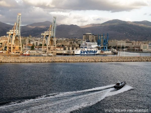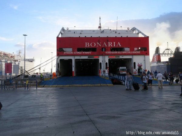 晚上搭乘Tirrenia渡輪從卡利亞里到巴勒摩,兩地距離468公里,船資51.25歐元。渡輪在晚上7點半離開薩丁尼亞島。隔天7點半抵達西西里島西北邊的巴勒摩(Palermo)港口。