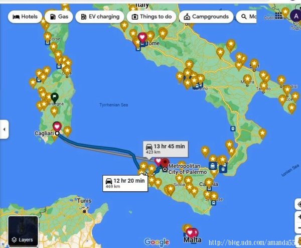 義大利薩丁尼亞島卡利亞里(Cagliari)-→義大利西西里島(Sicily)- 巴勒摩(Palermo)