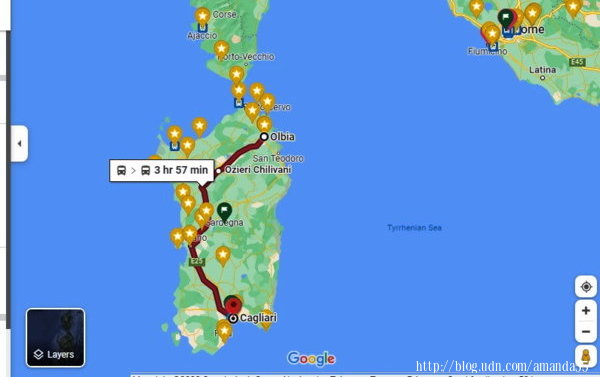 義大利薩丁尼亞島奧爾比亞(Olbia) -→卡利亞里(Cagliari)