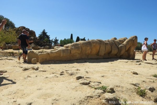 地上躺著巨神阿特力士(Atlas)8公尺高的巨大石雕