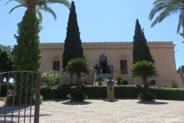 哈德卡斯爾(Hardcastle)的銅像立於奧里亞別墅 (Villa Aurea)的門前
