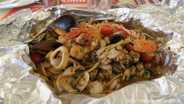 購買15歐元的公車卡可以無限次數的使用12天,比每趟買2歐元的車票便宜好幾倍。碼頭周圍是斯利馬的鬧區,有很多的餐廳,我在Café Sicilia點了綜合的海鮮麵與熱茶附加牛奶,當海鮮麵送到我面前時,用鋁箔做成天鵝造型的巧思令我驚喜不已,打開鋁箔後裡面好大份量的海鮮麵。豐富的海鮮讓我大飽口福,午餐費用21歐元。