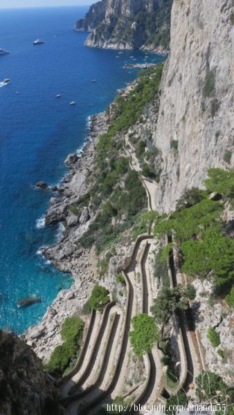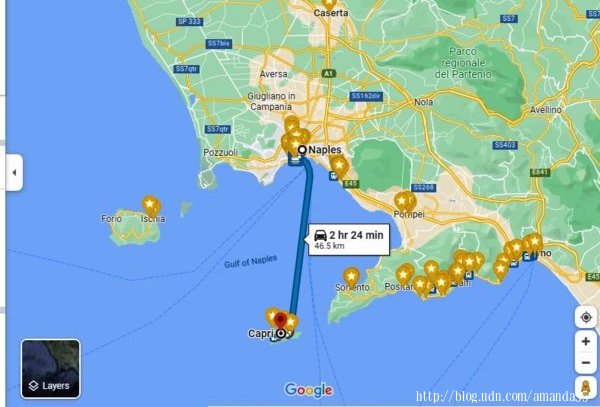 位於拿坡里海灣南端的卡布里島,與蘇連多半島(Sorrento Peninsula)僅一水之隔,我原本計畫從蘇連多搭船到卡布里島,但卻找不到渡輪的資訊,只得改從拿坡里出發。卡布里島是由一塊石灰岩構成的島嶼,長6.25公里,寬2.88公里,面積約10多平方公里,海拔高度589公尺。