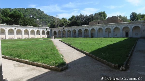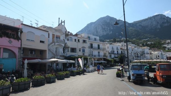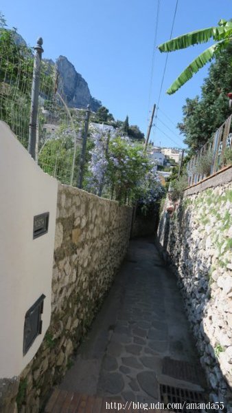回到市中心,走進熱鬧的La Prazzetta,有觀景台、酒吧、餐廳、商店、教堂、豪宅,這裡經常擠滿川流不息的人潮,廣場周圍有巷弄通往各個角落。隨著人潮走入迷宮似的巷弄,不知不覺中我已置身於南端的小港(Marina Piccola),座落於懸崖上的奧古斯都花園(Giardini di Augusto)是小港熱門的景點,需購買2歐元的門票,著名的克魯伯路(Via Krupp)出現於東側的觀景台的山坡下,這裡總是擠滿觀光客。附近的聖雅各伯修道院(Saint James’ Charterhouse)規模十分的龐大,裡面有漂亮的迴廊庭園。
