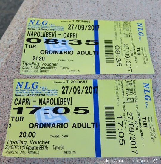 (2017/9/27)早上準備搭船往卡布里島(Isola di Capri),拿坡里與卡布里島的距離約34公里,船票在出發前兩個月已預購,N.L.G.渡輪是唯一有觀景甲板的渡輪,來回40.2 英鎊。