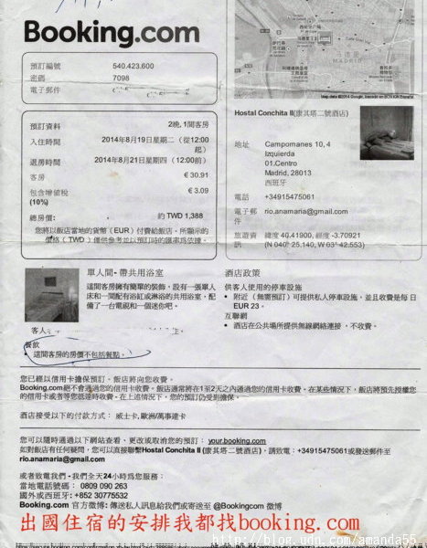 這趟旅程我只帶了約800歐元的現金,也帶了提款卡與信用卡,本來預算是食宿費用盡量以刷卡來支付,沒想到我帶出國的信用卡只有幾次刷卡成功,害我都不太敢進餐廳用餐,還好所帶的現金剛好在預算之內,全部加起來的旅費差不多10萬台幣,可說是經濟實惠的一趟旅程,重要的是我可以玩得盡興,不用再委屈自己來接受旅行社安排的食宿(最讓我無法忍受的是被旅行社安排住郊區的旅館,有時候餐點也很難令我滿意)。