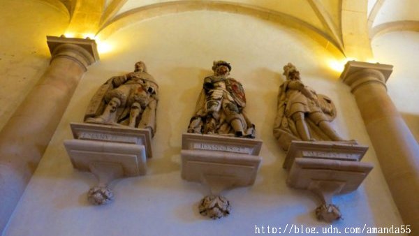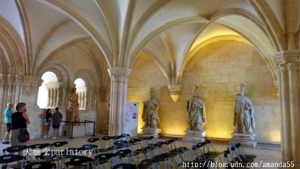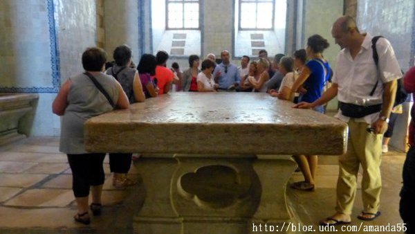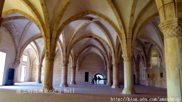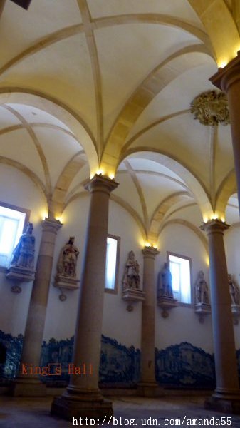 在主祭壇旁的小禮拜堂繞完了一圈,繼續走向出口處的King’s Hall,這裡通往教堂的每一座展覽室,門票€6,我拿出Lisboa Card,結果獲得完全免費參觀的優待,第一次嘗到Lisboa Card的甜頭可真是喜不自勝。走進第一間King’s Hall的展覽室,牆面皆是葡萄牙傳統的瓷磚圖案,牆壁上方陳列出葡萄牙各朝代的國王之塑像。繞過一道長廊,來到了僧侶聚會的大廳堂 parlatory 和樓上的住所 Monk’s Hall,大廳有一道門通往外面的走廊,從這裡俯瞰教堂的庭院與四周的建築最是賞心悅目。