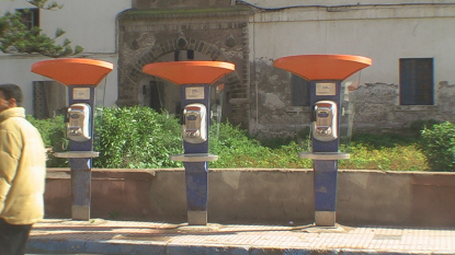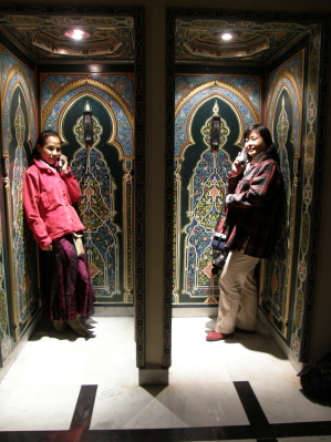 結束了Marrakesh當天緊湊的行程後,我們來到所投宿的 Royal Mirage Hotel;在領隊辦理check in的時間,我們就在旅館裡到處閒逛。瀏覽了一下商店,沒什麼可看;再逛到Lobby的右側,看到兩間電話亭,它們的設計有別於一般形式,是前所未見的;我像發現新大陸似的興奮,於是馬上告訴阿鄧,過來欣賞這個有趣的設計。