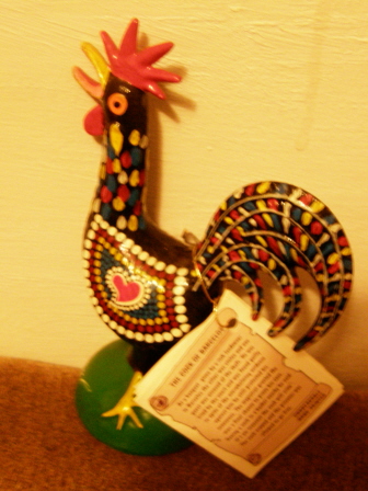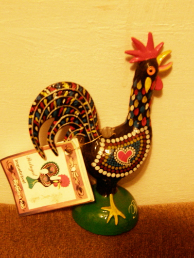 在大家的慫恿下,我小心翼翼的打開禮物,當一隻五彩繽紛的瓷製公雞呈現在眾人眼前時,大家都驚豔不已,原來導遊買的神秘禮物就是要送給壽星的我;我對這樣特別的禮物真是愛不釋手,這隻全身布滿人工彩繪的公雞,是當地有名的手工藝品,公雞的尾巴上還附有一本各國語言寫成的本事介紹。不過是一則穿鑿附會的傳說,這裡就略過不談了。