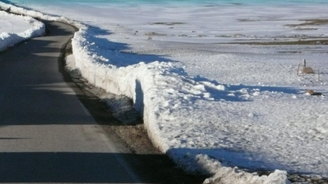 堆在車道兩旁的積雪,為蜿蜒的道路塑造出一道道優美的弧線,那畫面的張力,讓人不得不聯想到聖經故事中,摩西出埃及時,把紅海的海水撥開般的震撼了。 (照片在Morocco-1相簿的第2和3頁)