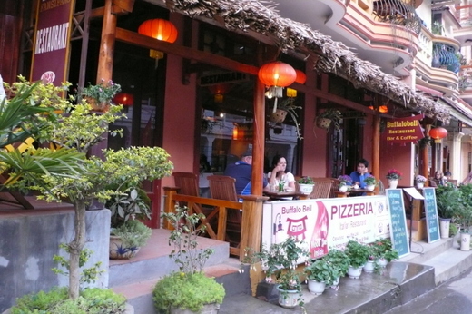 在熙來攘往的P Cau May街上,到處都是餐館林立,遊客們走在街上,常會讓苗族婦女團團圍住,然後當街推銷他們的手工藝品,那些被視為肥羊的老外,要想脫身可得費盡九牛二虎之力了,我們這些旁觀者,趁漁翁得利之時拼命的猛按快門,真是有趣極了。
