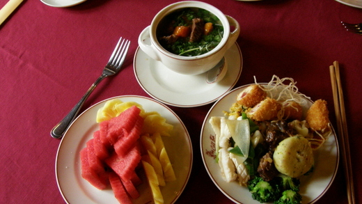 河內的 Sofitel Plaza 是一家五星級的旅館,在河內停留的兩天,我們就是投宿於此。在一樓 Lobby 的左側,是以 buffet 方式經營的餐廳,所以我們有兩次機會享受5星級的 buffet 晚餐。