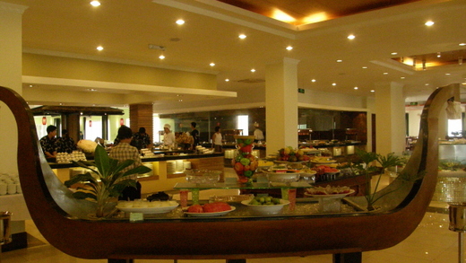甜品區雖然種類繁多,但我永遠只選擇紅豆紫米粥,其實可以多種粥品綜合而調配成獨特的一種甜品:摩摩喳喳。再加上包著椰子絲的大湯圓,簡直是人間極品,就這樣一口接一口的品嘗著幸福的滋味,不自覺的已吃下了兩碗了。