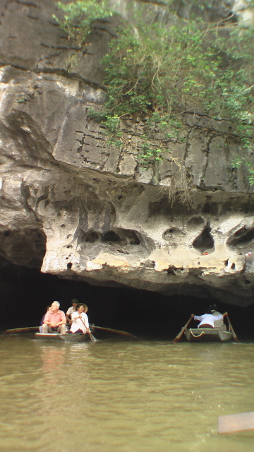 正在欣賞兩岸風光時,第二個溶洞又出現於眼前了,看著由洞口出來的一艘艘小船,好像從一隻怪獸的嘴巴中脫逃似的有趣。我們卻正要從猙獰的洞口進入一個神秘的世界中,再一次體會被吞噬的感覺。