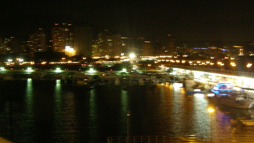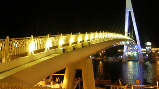 半個鐘頭後終於到達漁人碼頭,這時夜空已被黑濛濛的一片暮色所籠罩,遠遠矗立的白色情人橋在華燈的妝扮下,更是凸顯出其獨特的造型。來此拍照的人大都是情侶們,到處都充滿了青少年的笑鬧聲。