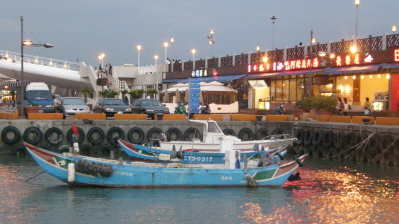 跟著阿鄧走到河堤,這時已是華燈初上了,雖然今天沒有璀璨的夕陽,但熱鬧的街景與旖旎的海岸風光,就足夠讓我沉醉在浪漫的情懷中了。沒想到一下子就墜入愛戀淡水的夢幻中,於是我又築起一個夢想,等我有錢時,我要把家搬到淡水來,天天享受河堤步道的浪漫。