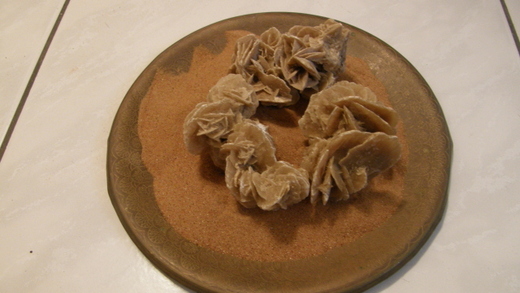 我記得那是在抵達突尼西亞的第四天,我們來到了回教的聖城開路安時,沿途擺了許多賣玫瑰石的攤販,這些玫瑰石比不上在突尼斯看到的漂亮,但價格相對的便宜許多,攤販們就一堆堆的喊價。一堆5顆竟然便宜到只剩下8美元,不買還等到什麼時候,我就一口氣買了 5顆,後來的比價結果,才知道這是最便宜的價錢了。