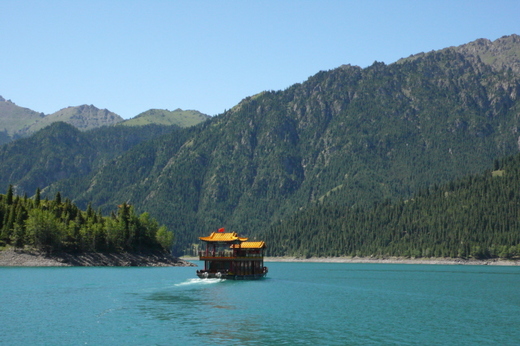 在導遊的催促下,我們終於登上了畫舫,就此展開了一趟遊湖之旅,當畫舫划向湖心,我們對這座瑤池的感受更加深刻了。一幅幅遠離塵囂,彷彿置身於世外桃源般的景致,不斷的從四面八方而來,相機再怎麼拍,都無法顯現那份空靈般的美,似乎只有用心靈體會才能抓住那種超然的意境了。遊湖一周的一個小時內,讓我們飽覽了天池的綺麗風光,也彷彿讓山川靈氣滌淨了整個的心靈。這就是拜訪仙境後的深刻感受了。