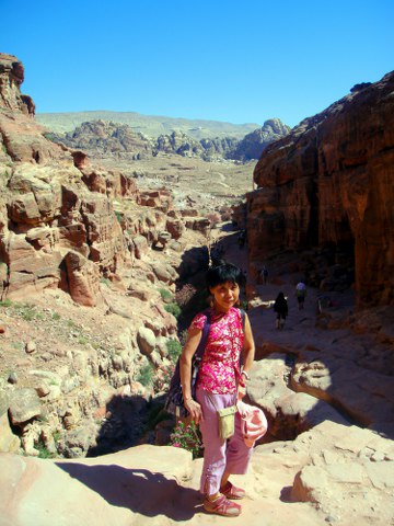 山,也有一些貝都因的婦女擺著攤子,兜售著傳統的手工藝品。走完了約 1 千