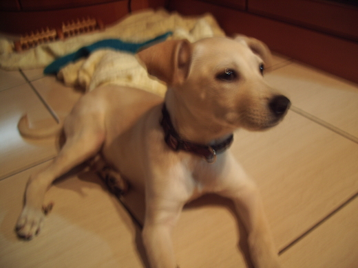 我很感恩, 總是遇見好人, 他和她有一夜情....是他把她先帶回家, 再帶來公司要轉交我朋友的, 而我朋友臨時毀約, 所以讓我們家第一次養狗兒, 我本來就不是嚴格的人, 另一位養狗的同事教了我很多對狗的規矩, 我是聽了, 但我都沒採用, 因為我不是要訓練狗, 我是要愛她, 但同事來看她 2 次, 也發現她真的變得很皮.....